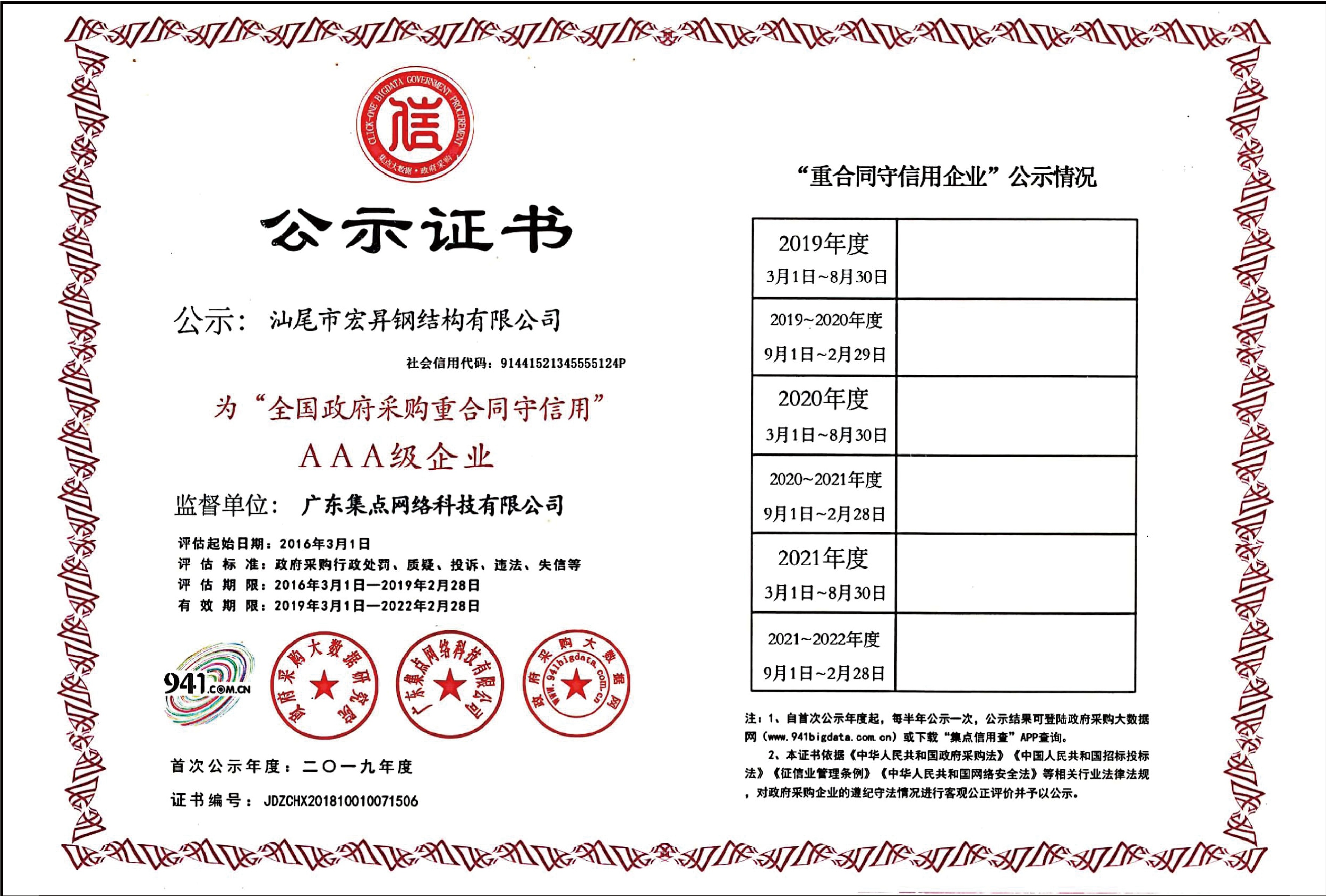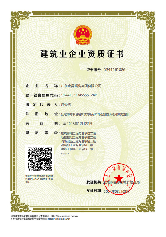 公司注冊資金8088萬元,取得國家高新技術(shù)企業(yè)、專精特新、創(chuàng)新型技術(shù)等多項(xiàng)榮譽(yù)資質(zhì)。擁有“鋼結(jié)構(gòu)施工承包二級”“玻璃幕墻專業(yè)承包二級”“房屋建筑工程總承包”等資質(zhì)。在汕尾市、惠州市擁有鋼結(jié)構(gòu)加工和維護(hù)系統(tǒng)三個生產(chǎn)基地,廠房占地面積15萬平方米,年生產(chǎn)鋼結(jié)構(gòu)件達(dá)8萬噸,維護(hù)系統(tǒng)生產(chǎn)200萬平方米。公司通過國家IS09001-2001質(zhì)量管理體系、GB/T280012001職業(yè)健康衛(wèi)生管理體系和IS0140012004環(huán)境管理體系認(rèn)證,確保產(chǎn)品質(zhì)量和服務(wù)水平始終處于行業(yè)前列。